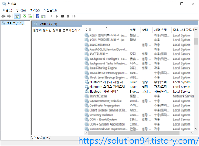 윈도우 검색에 'services'라고 치면 나온다. 여기서 블루투스와 관련된 서비스가 3개 있다.