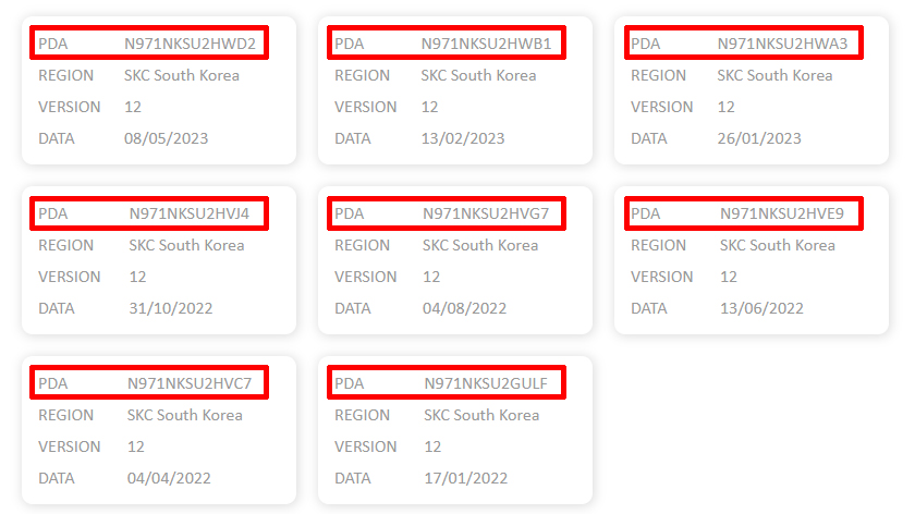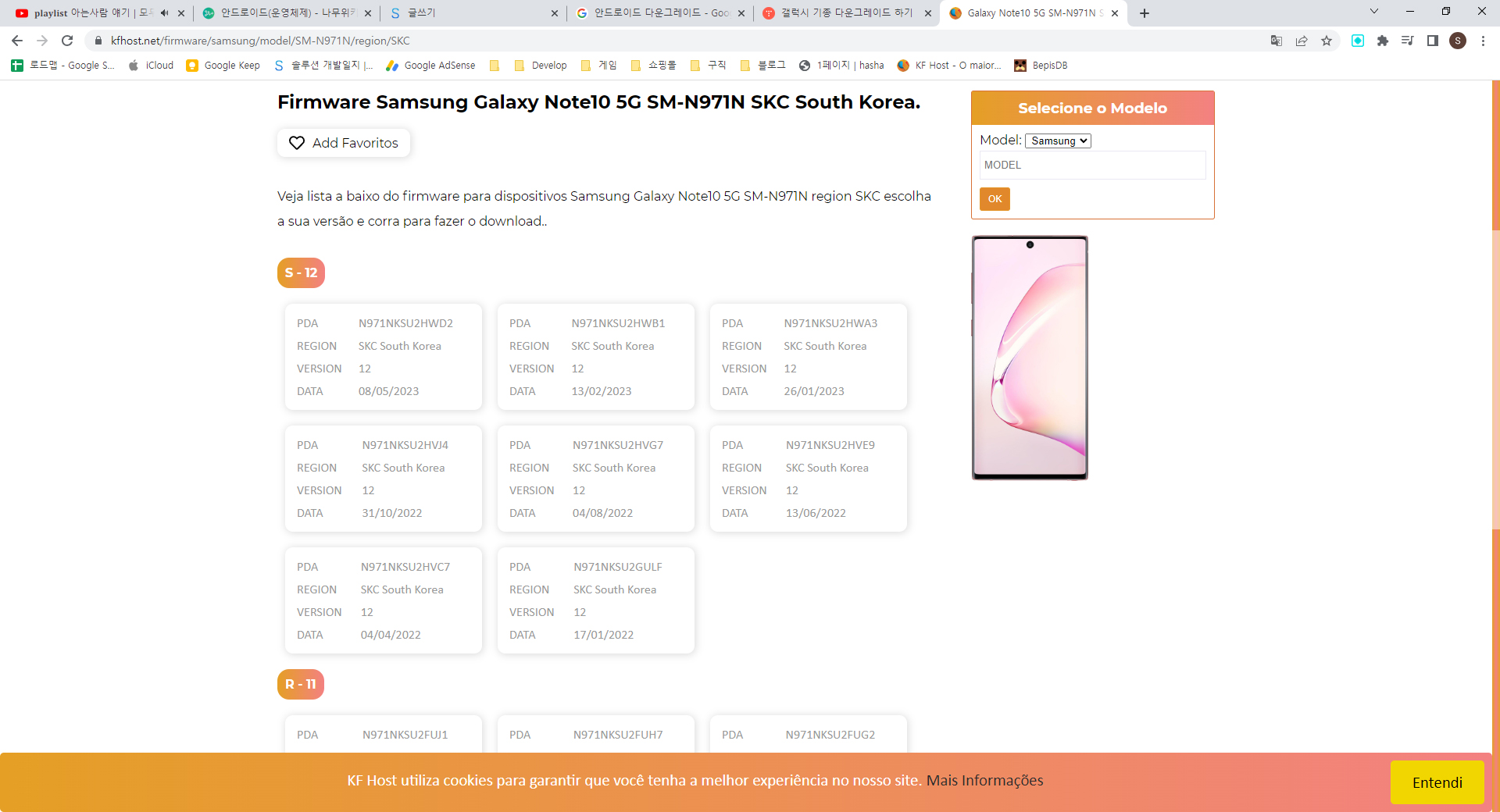 지금 예시의 갤럭시 노트10 검색결과는 전부 버전이 12밖에 없지만 실제 다운그레이드를 진행했던 갤럭시 S10e 모델의 경우 12와 11이 존재했다. 자기가 검색한 결과에서 원하는 OS 버전이 존재하고 부트로더 버전이 더 낮은 펌웨어가 아니라면 다운로드해주면 된다. 회원가입도 필요 없고 무료다.(다시 말하지만 광고 아님... ㅎ)