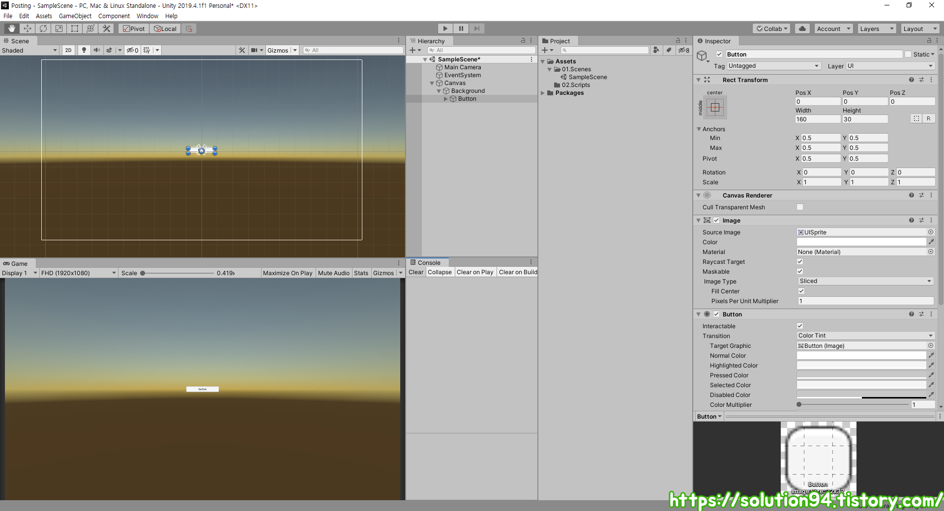 먼저 프로젝트 하이어라키에서 UGUI에 있는 Button을 생성해줍니다.