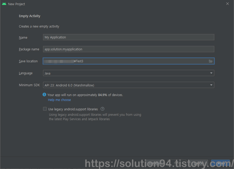 2. Android Studio에서 동일한 경로에 정상적으로 프로젝트를 생성시킨다.