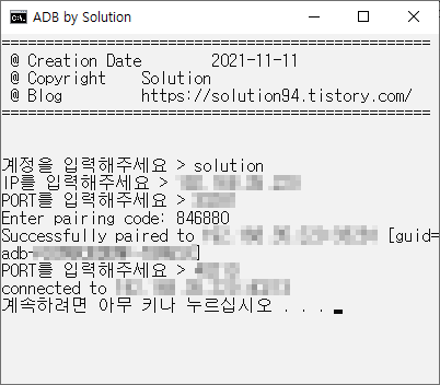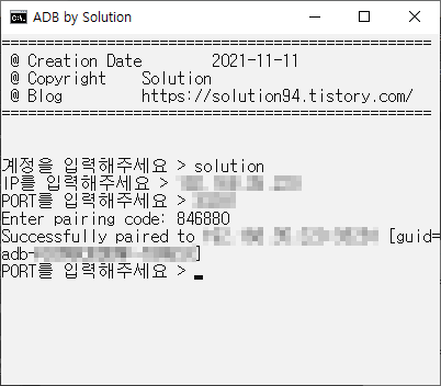 정상적으로 진행되면 보이는 것처럼 페어링에 성공했다는 메시지가 출력된다.